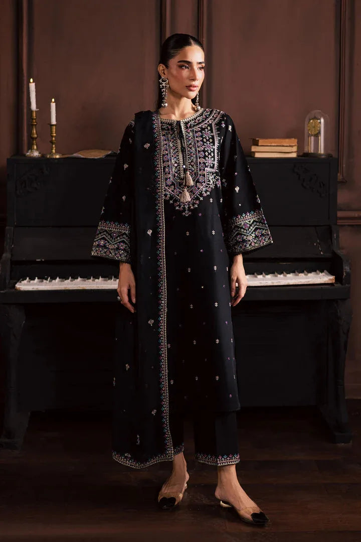 Embroidered lawn front with daman emb patch, embroidered sleeves, and plain dyed lawn back