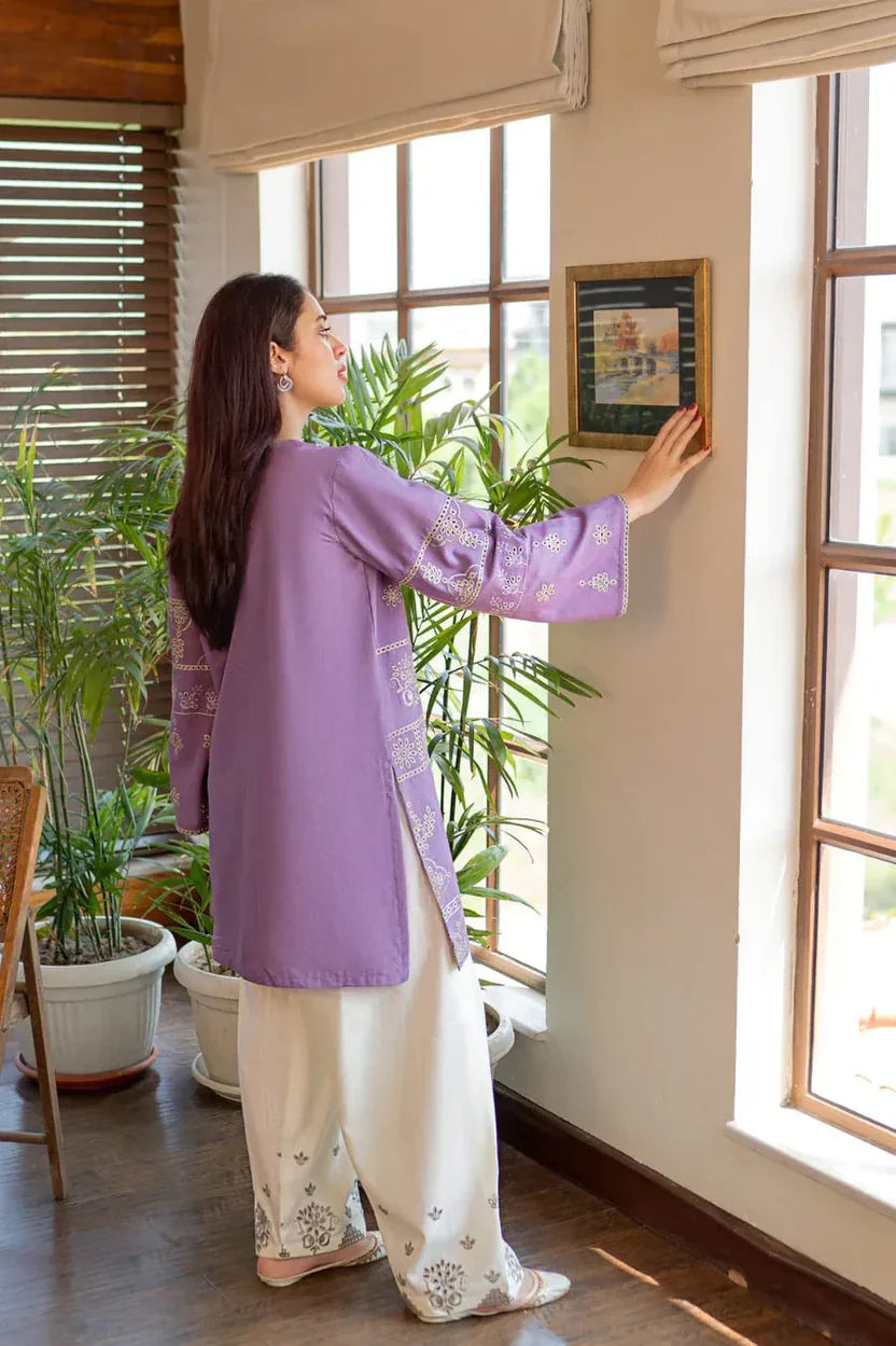 Embroidered lawn front with matching daman emb patch, embroidered lawn sleeves, and plain dyed lawn back